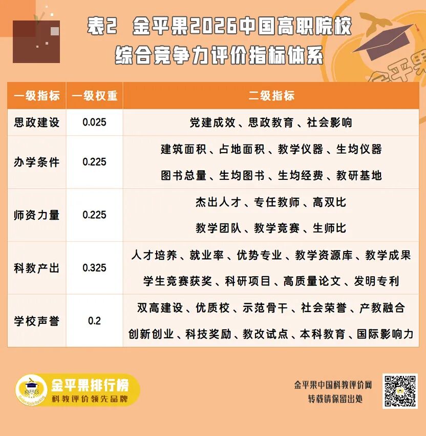 2026年3月26日,“金平果”正式发布 2026 年中国高职高专院校综合竞争力排行榜,这是该榜单连续第十五次发布高职院校评价结果。