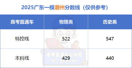 2025年广东一模官方划线显示:物理类最低424分可上本科,历史类最低432分可上本科。