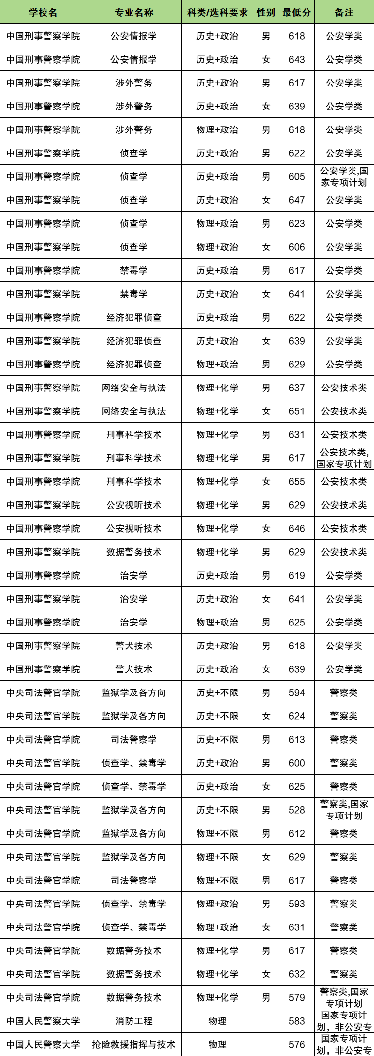中国刑事警察学院:历史类605分、物理类606分;