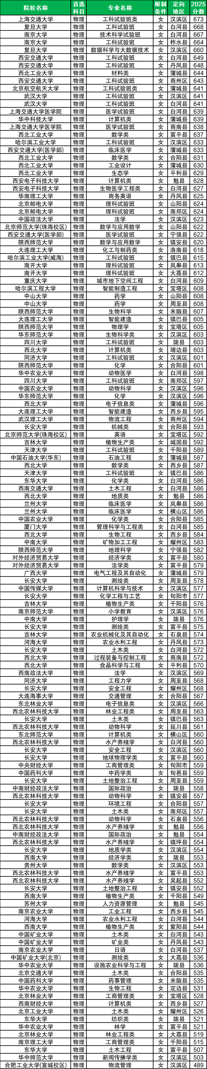 大学专业在各地录取分数线不一样,本文仅以陕西本科提前批次高校专项计划院校各专业录取数据为例,为大家整理本科提前批女生录取分数线。