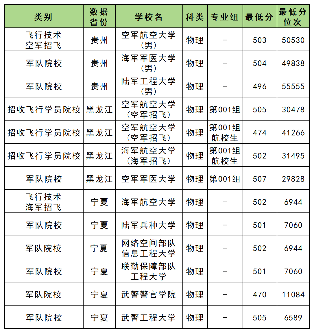 500分左右仅在部分省份可以上军校,从各军校的录取数据来看,高考500分左右在青海、贵州等地可以上武警警官学院、陆军工程大学等,以下是2025年全国军校470分-510分之间能上的大学名单。