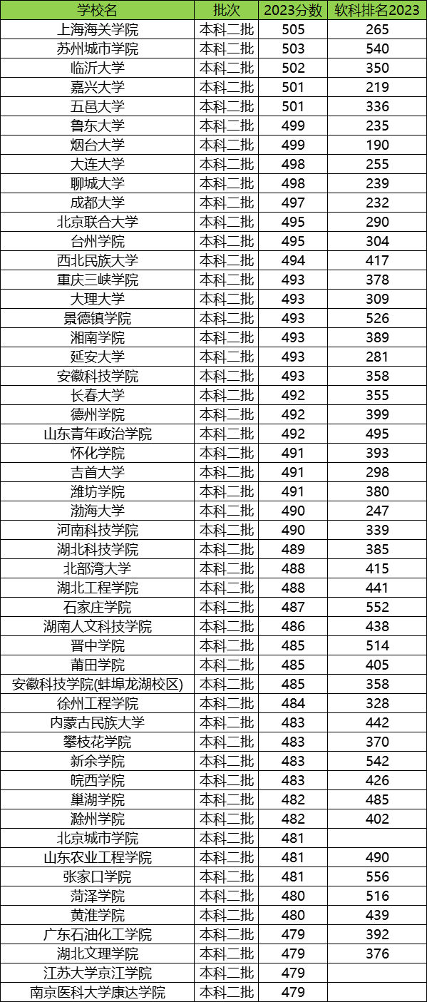 全国在综合类文科招生的247所二本大学中,最难考的是上海海关学院,2023最低分505分。苏州城市学院(503分)、临沂大学(502分)也是分数比较高的二本大学。