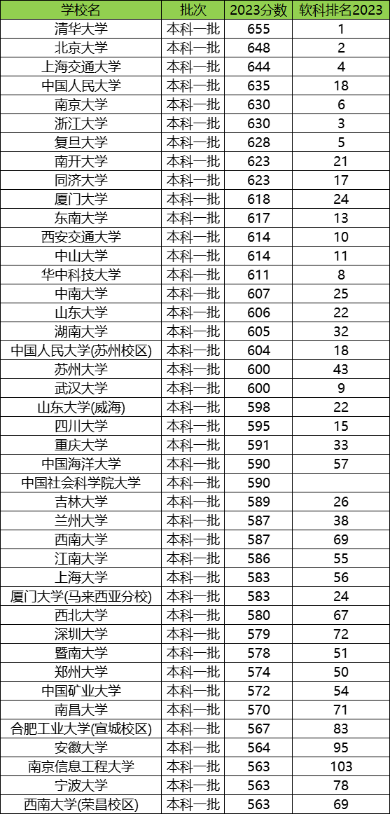 (本文列举数据为2023年全国大学在安徽省的招生分数)