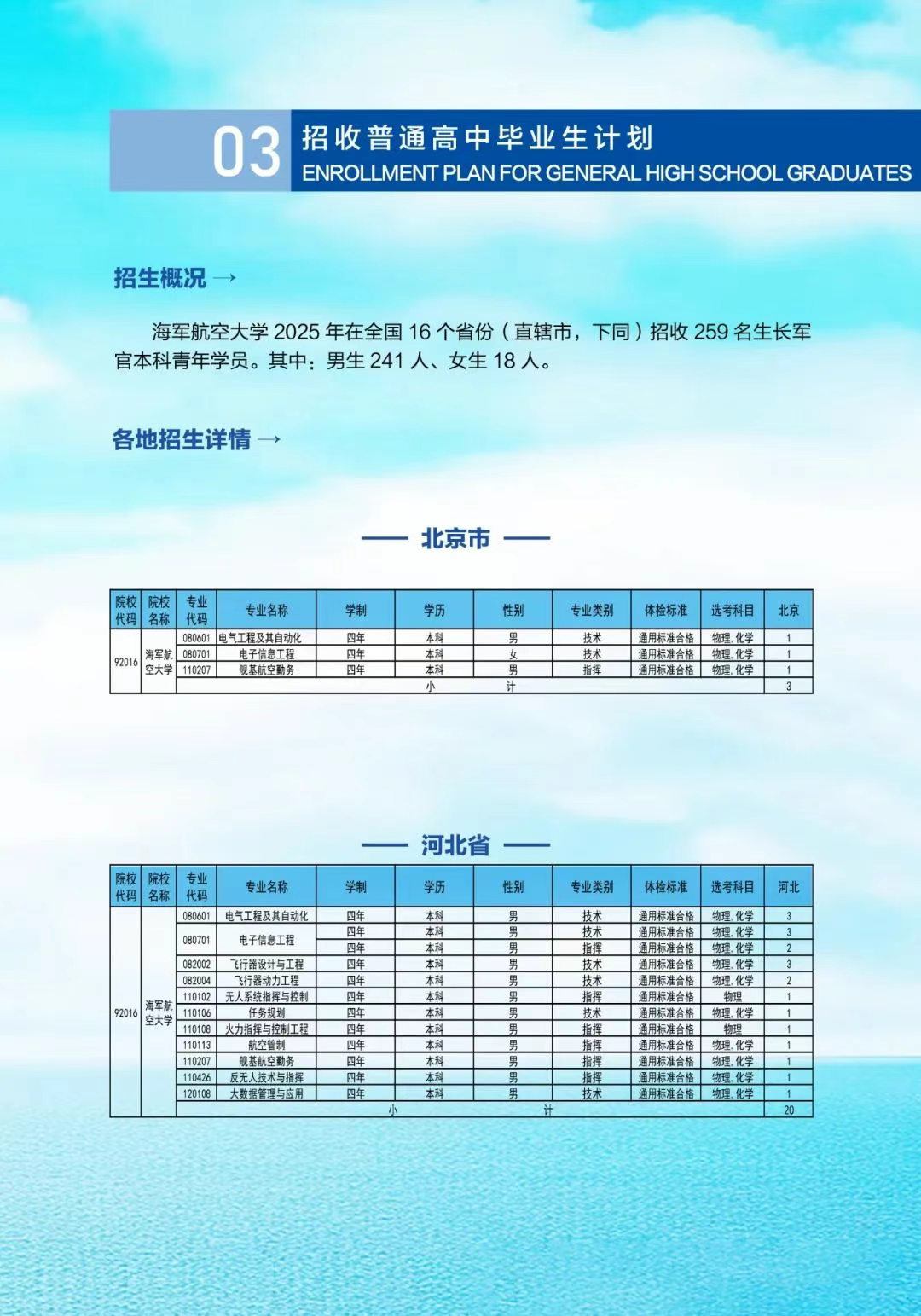 以下为2025年海军航空大学招生简章中的重要信息,供各位想要报考海军航空大学的同学参考。
