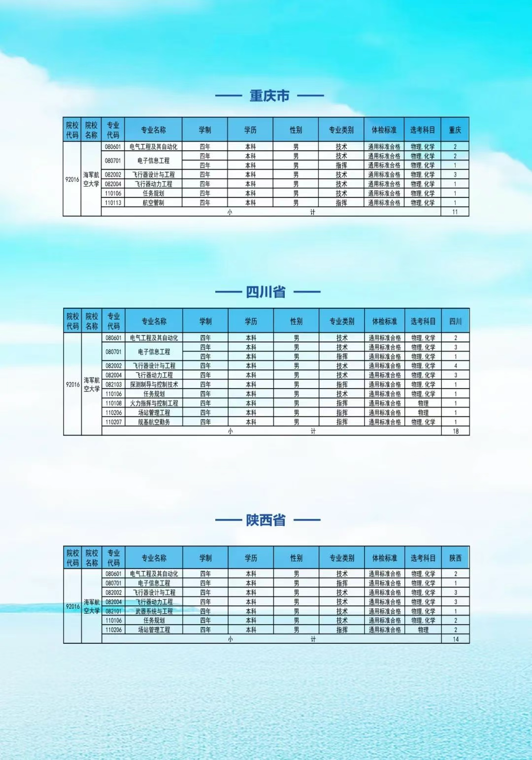 海军航空大学2025年在全国16个省份(直辖市,下同)招收259名生长军官本科青年学员。其中:男生241人、女生18人。