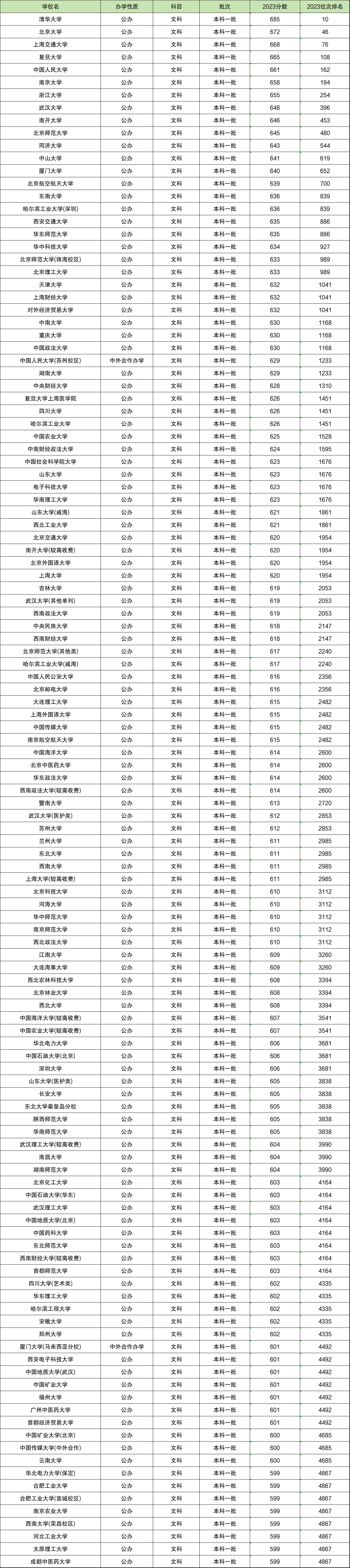 2023年河南分数排名对应大学名单为:文科609分排在3260名,3260名对应大学是江南大学;理科642分对应4712位,4712位对应院校是电子科技大学(沙河校区)。更多分数位次对应大学名单请见文章内容。