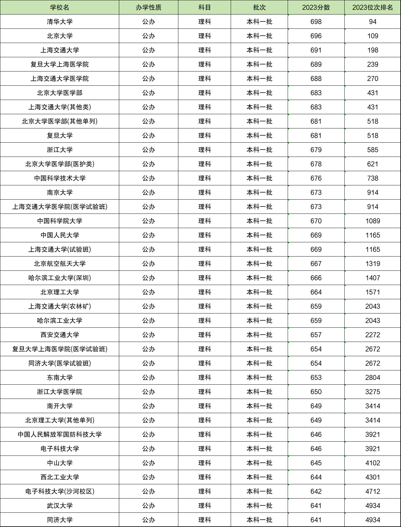 在1-5000名范围内,最高排名对应的大学是清华大学,最低录取排名为10位,排名对应分数为685分;