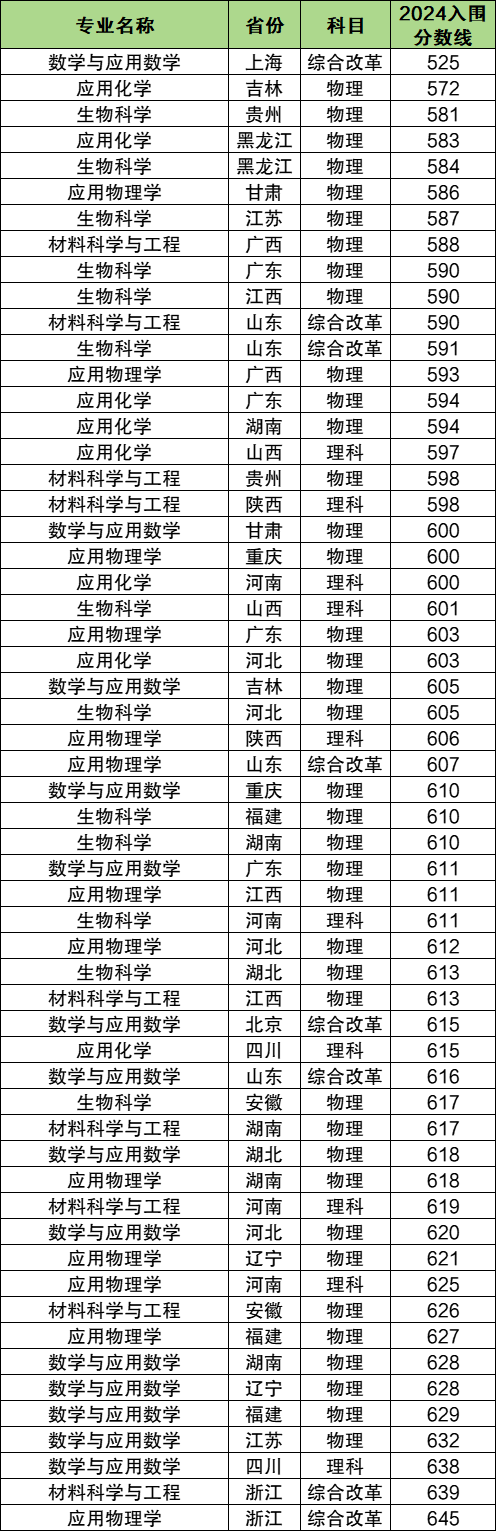 上述专业均为理工类专业,要求选科必选物理+化学,其中应用化学、生物科学、材料科学与工程不招收色盲、色弱、单色不能识别考生。招生计划以报名系统公布为准。