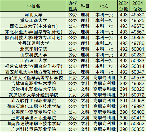 2025年陕西高考5万名左右的文科生能上的大学有石家庄人民医学高等专科学校、天津机电职业技术学院、湖南石油化工职业技术学院、上海科学技术职业学院等,2024最低位次49578名~50417名。从大学档次及办学性质来看,文科5万名左右对应的是多数为公办大专院校。