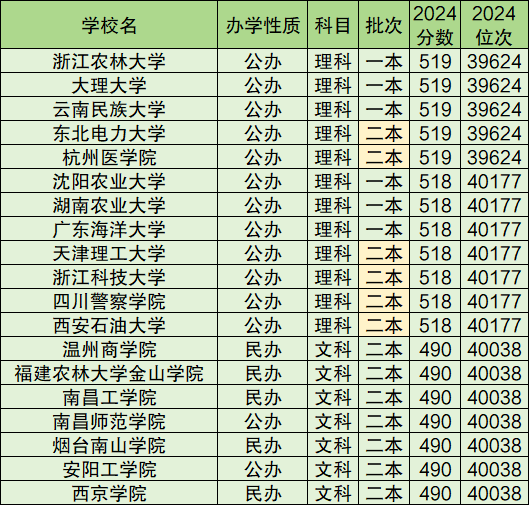 2025年云南高考4万名左右的理科生能上的有浙江农林大学(39624名)、云南民族大学(39624名)、沈阳农业大学(40177名)等一本大学;也可以上东北电力大学、杭州医学院、天津理工大学、四川警察学院、西安石油大学等二本大学。