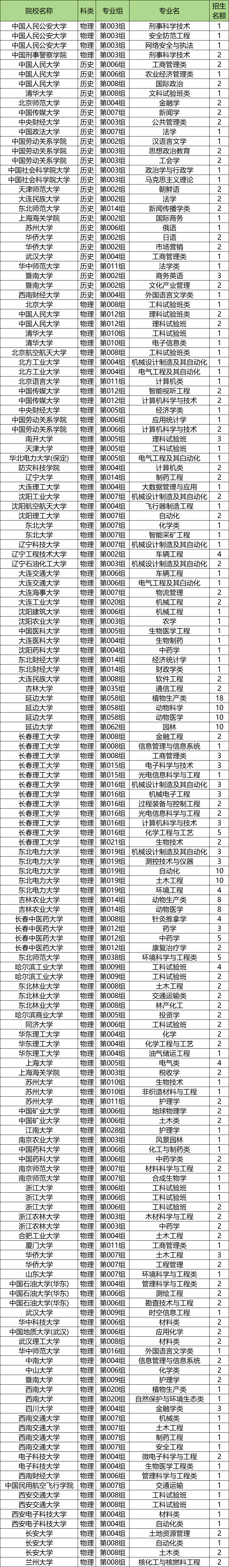 二、吉林国家专项计划大学及专业名单