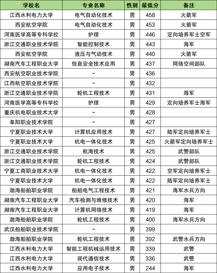 | 江西信息应用职业技术学院 | 男 | 417 |