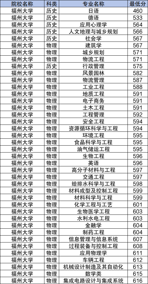 学校地方专项计划历史类最低分数线是460分,对应的招生专业是日语;物理类最低分数线是567分,对应的招生专业是建筑学。
