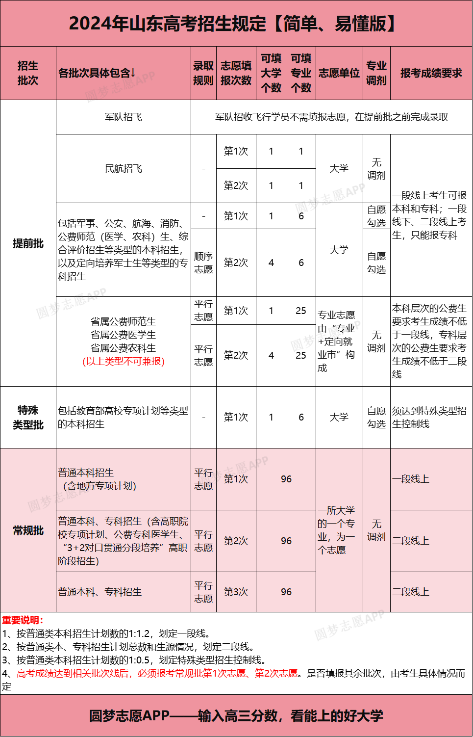 2025年山东高考志愿分本科批、专科批填报,所有志愿都是平行志愿。其中普通类本科批和专科批均可填报96个志愿,志愿填报需按照“冲稳保”比例安排,具体比例如下文所示。