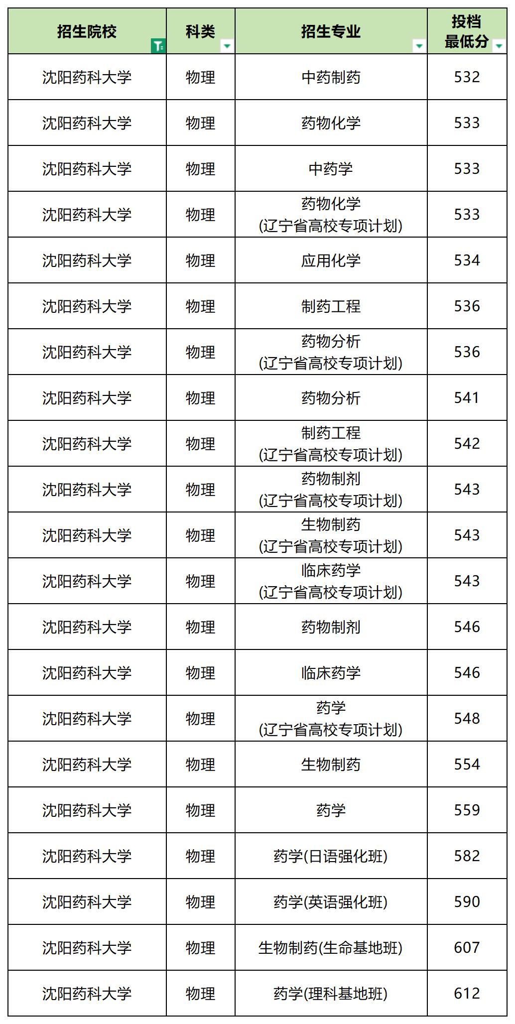 物理类分数范围:532分~612分;最低分专业是中药制药、最高分专业是药学(理科基地班)。