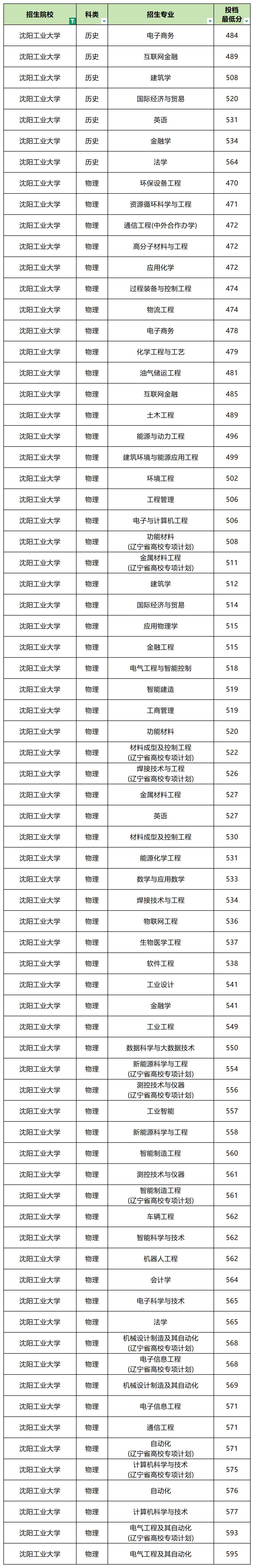 物理类分数范围:485分~581分;最低分专业是动物科学(辽宁省高校专项计划)、最高分专业是电气工程及其自动化。