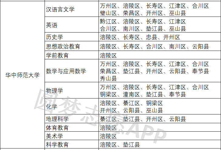 比如华东师范大学2025年发布的本研衔接师范生通知文件中,重庆市的国家公费师范生履约任教范围就没有重庆主城9区,仅包含了重庆主城区外的周边区县。