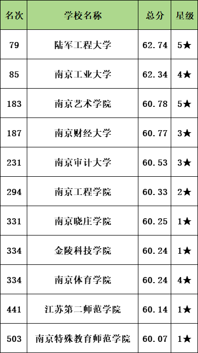 第一名:陆军工程大学,全国第79名;