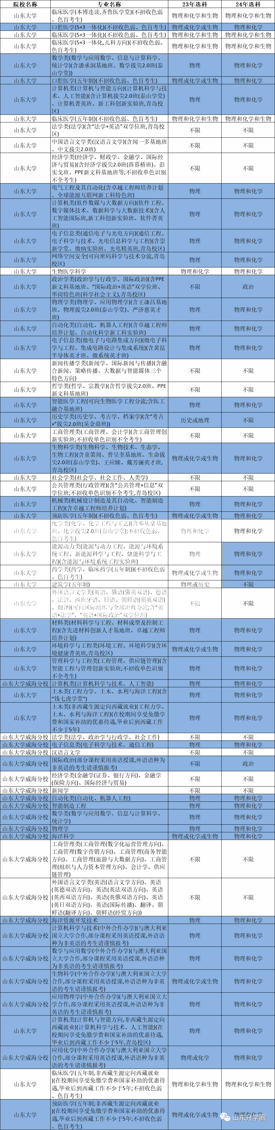 小编在此以山东大学为例,整理了山东大学专业门类的选科要求变化: