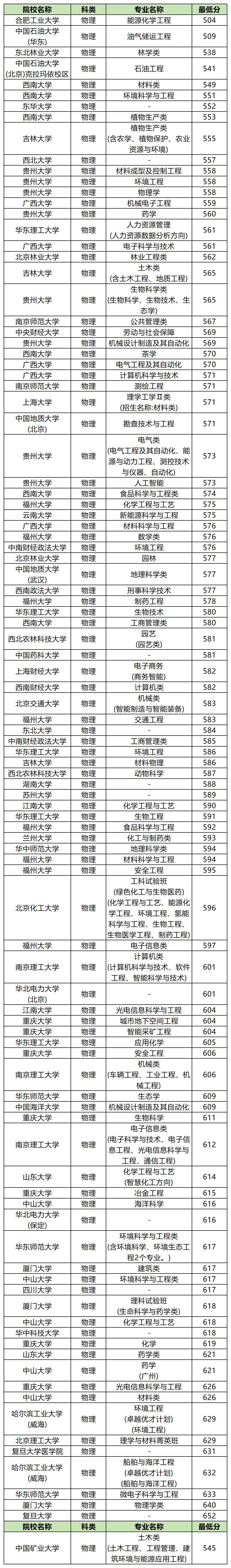 1、物理类:最低分504分