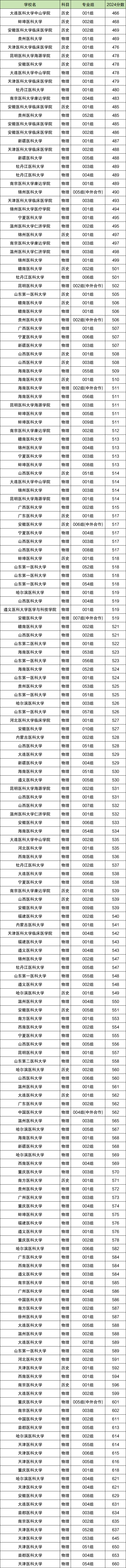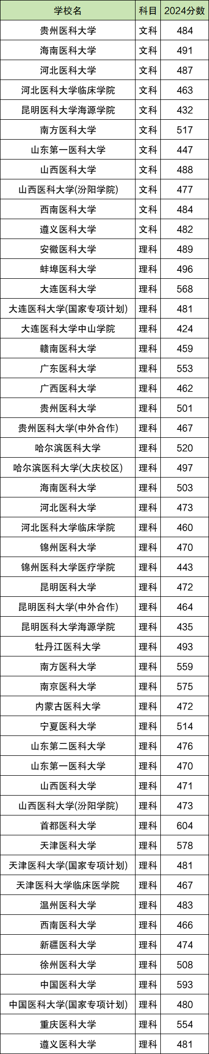 2024全国各省医科大学录取分数线