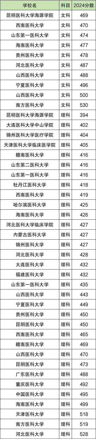 本文就整理出2024年医科大学在全国部分地区的录取分数线,供参考。