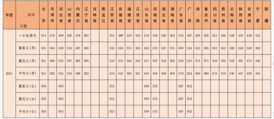 3、陆军特种作战学院2021年全国各省分数线