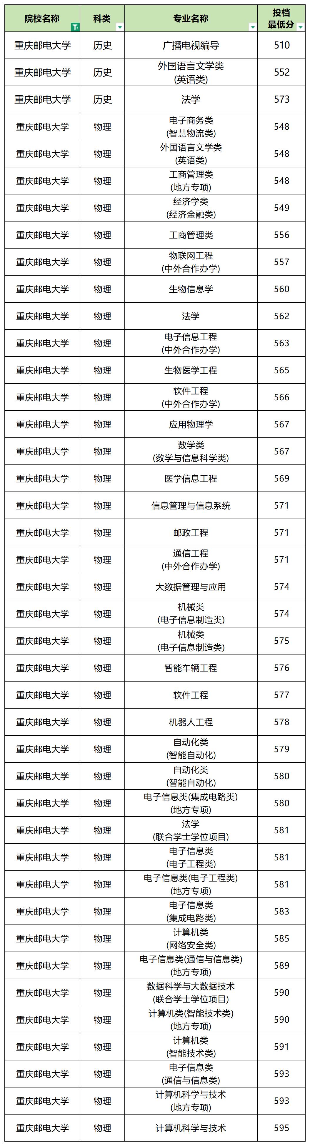 物理类分数范围:548分~595分;最低分专业是电子商务类(智慧物流类)、最高分是计算机科学与技术。