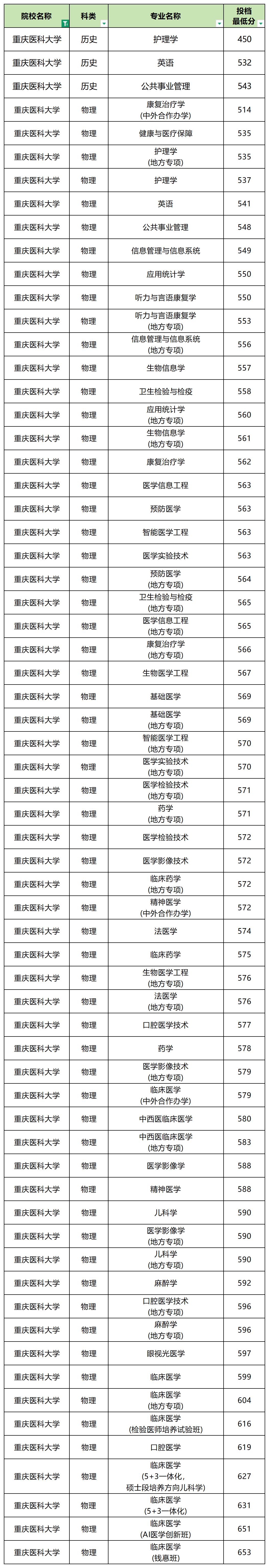 物理类分数范围:514分~653分;最低分专业是康复治疗学(中外合作办学)、最高分专业是临床医学(钱惪班)。