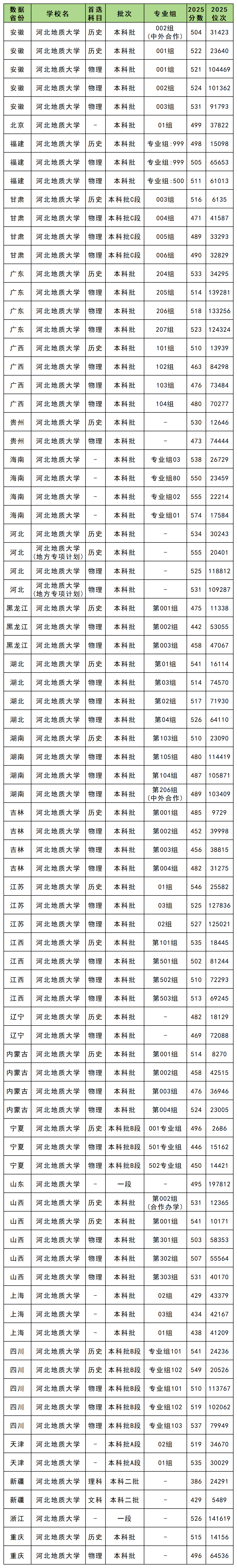 2、河北地质大学录取分数线2025一览表
