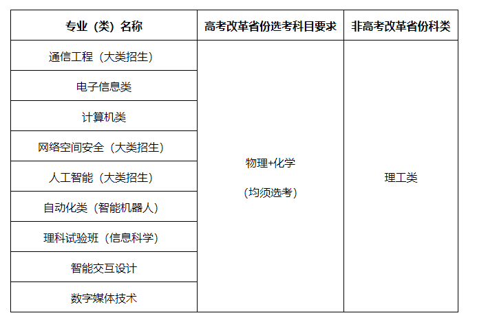 注:1.对于非高考改革省份,仅限理工类考生报考;
