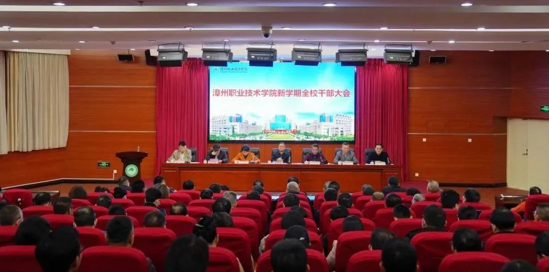 2月18日,漳州职业技术学院新学期全校干部大会在学校国际学术交流中心二楼报告厅举行。会议回顾总结学校2021年工作,分析研判当前发展形势,安排新学期工作重点,动员全校干部全力以赴推动“双高计划”“创本”中心工作,促进学校高质量发展,以实际行动迎接党的二十大胜利召开。校党委书记康溪顺出席会议并作强调讲话,会议由校长林培榕主持。