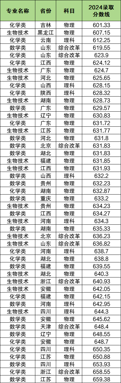 共4个专业:数学类、化学类、生物技术、应用物理学。