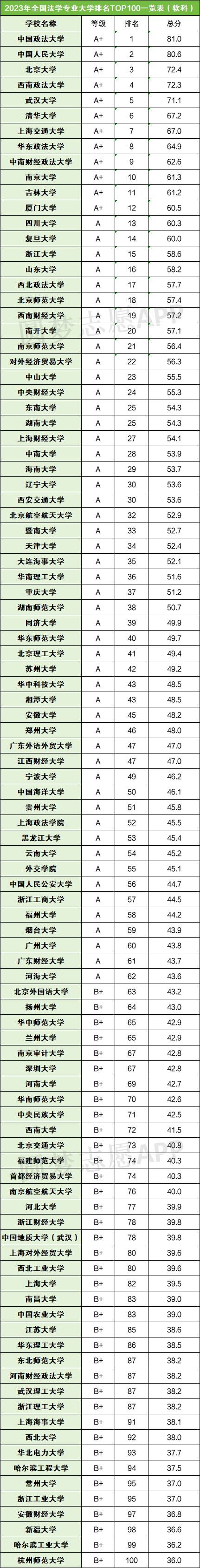 在法学专业的排名中,位于第一的是中国政法大学,总分是81分,法学实力最为靠后的是绍兴文理学院,总分仅17.9分。