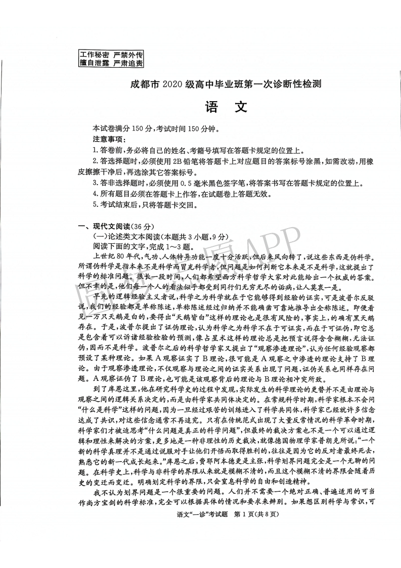 2023成都一诊考试在1月9日开考,考试中会考到四门,即语文、文数/理数、英语、文综/理综,等各科考试结束,小编将会在本文及时更新各科答案及试卷,同学们可以持续关注本文或高考100网站!