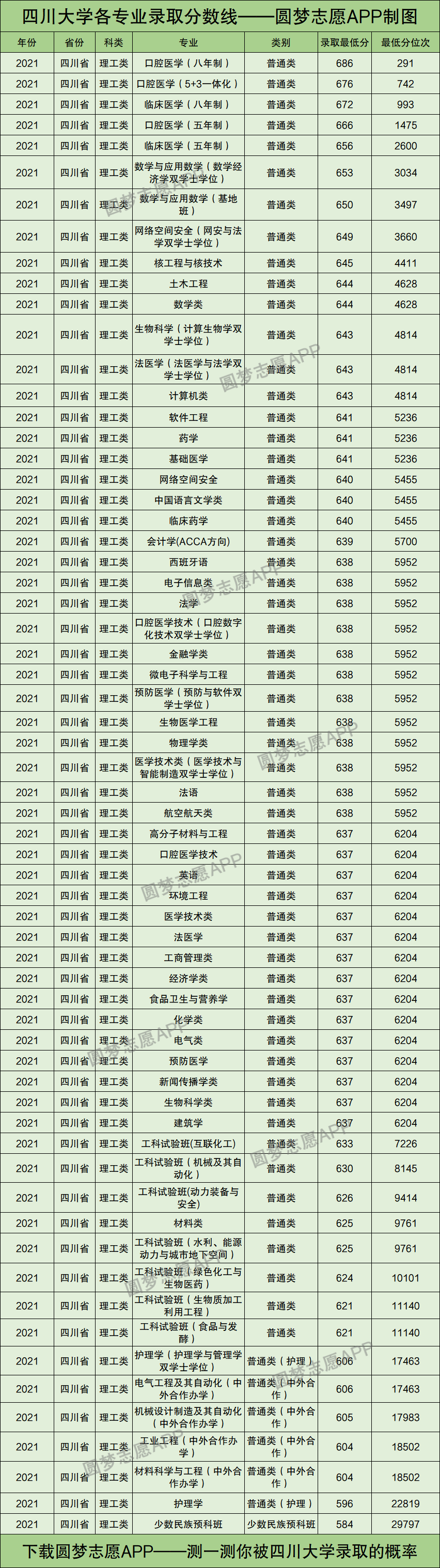 四川大学各专业录取分数线2021年是多少分?四川大学的最低分位次在全省排名多少?