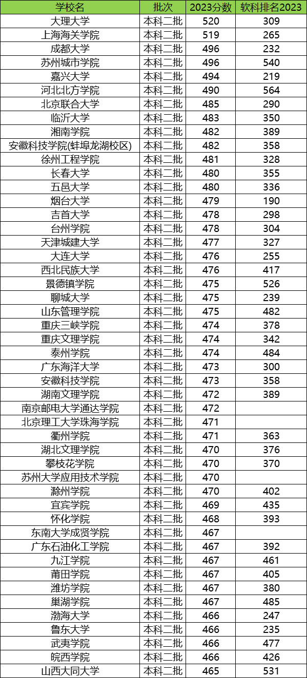 2023年综合类理科二本大学最低录取分数线427分,综合类理科考生最好考的二本大学有27所,包括长春人文学院、广东白云学院、桂林信息科技学院、哈尔滨剑桥学院、海口经济学院等,这些都是压线能上的二本院校,适合二本线附近的考生捡漏。