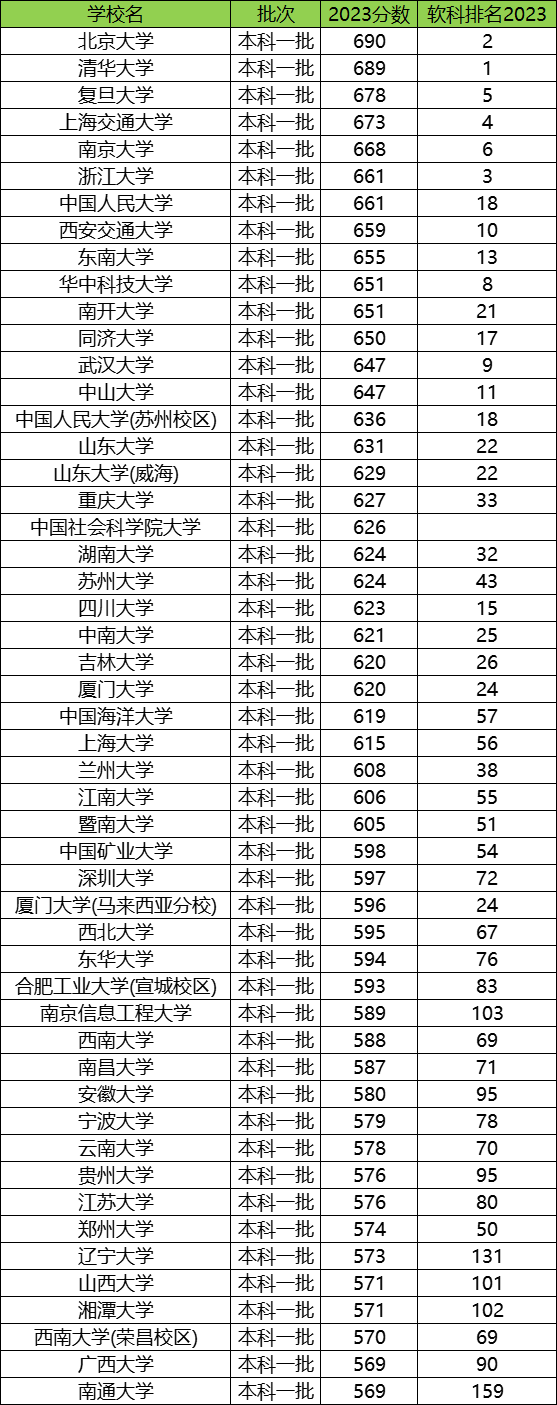 (本文列举数据为2023年全国大学在安徽省的招生分数)