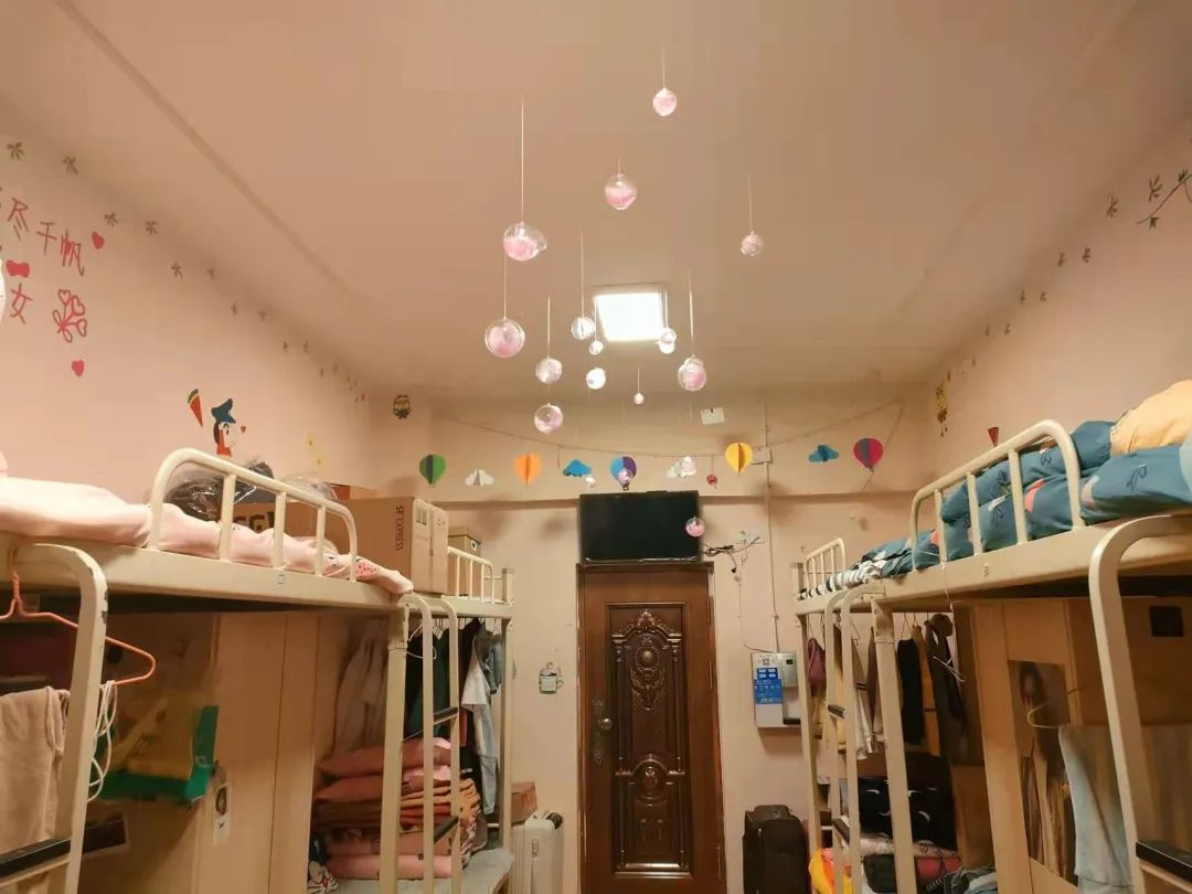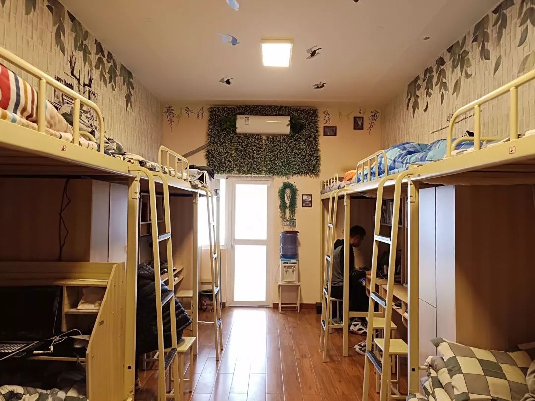 宿舍有六人间、四人间。四人间是上下床,两人是上床下桌,有空调。