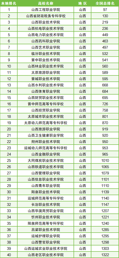 排名能够大致判断出一个院校的综合实力,为帮助同学们择校,本文以中国科教网金平果排行榜数据为例,列举2024年山西省内高职院校的排名情况。