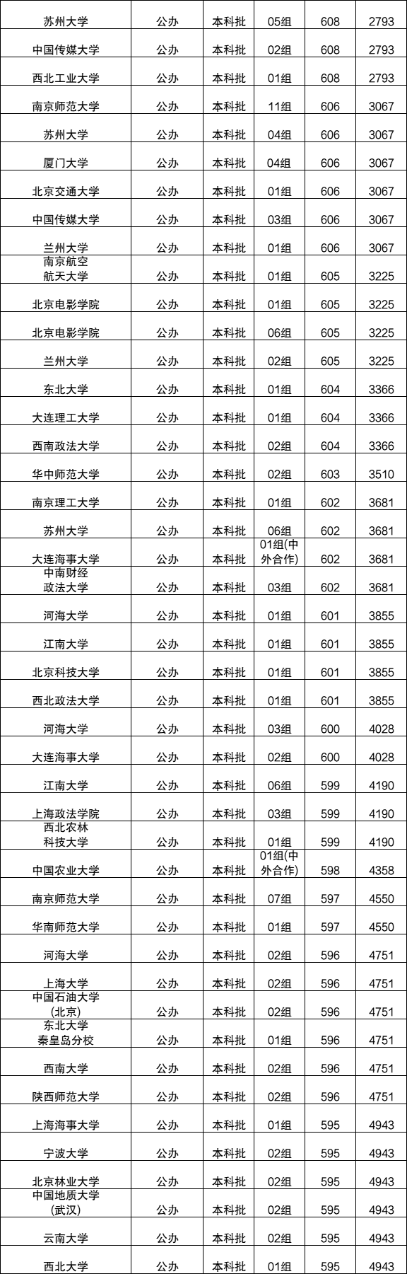 1-5000名中最低位次对应的大学是上海海事大学、宁波大学、北京林业大学等4所,最低录取位次为4943位,位次对应分数为595分。