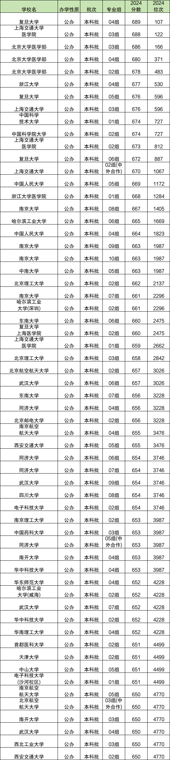 江苏历史科目1-5000名对应大学名单:清华大学、北京大学、北京大学医学部