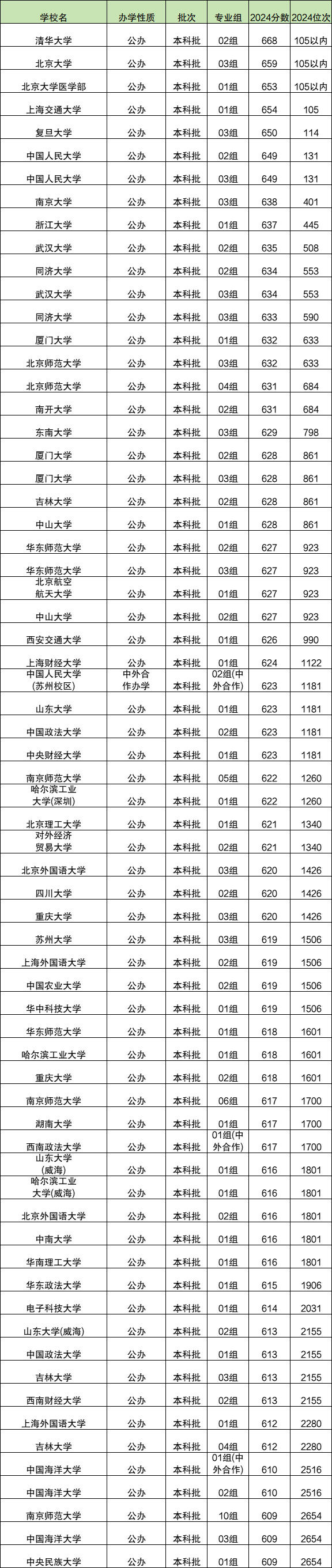 2024年江苏高考分数位次对应大学分别是:历史科目620分对应位次1426位,对应北京外国语大学、四川大学重庆大学;物理科目663分对应位次1987位,对应南京大学,更多分数对应位次以及大学的情况请看下文。