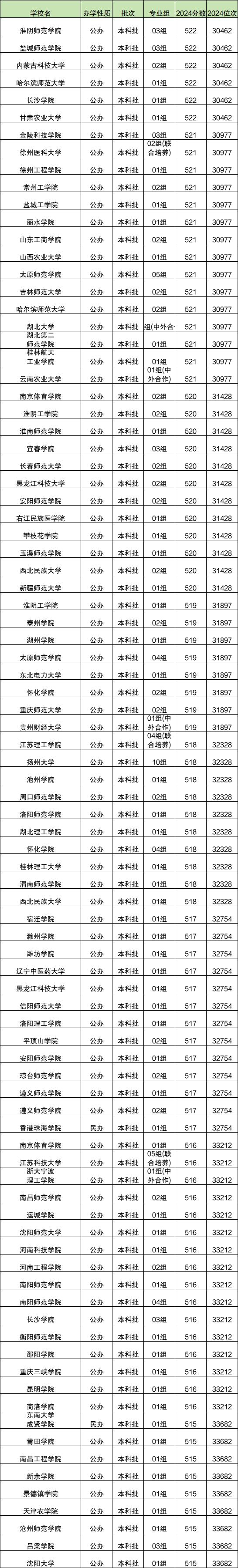 江苏历史科目3万-3.5万名对应大学名单:淮阴师范学院、盐城师范学院、内蒙古科技大学