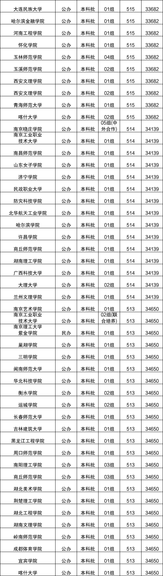 3万-3.5万名中最低位次对应的大学是成都体育学院、宜宾学院等23所,最低录取位次为34650位,位次对应分数为513分。