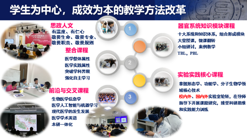人体科学馆、病理标本博物馆、临床解剖中心、病理诊断中心等助力教学活动开展,同时还有临床医生参与基础课教学,把临床的需求和经验传授给学生。为灵活改变教学模式,我们采用线上线下共建,优化知识结构,虚拟实验和慕课、在线课程、翻转课堂、混合式教学等形式加强实验教学,提高学生的实践能力。以重大疾病为导向,从健康的角度,从技术的发展,提高教学水平。