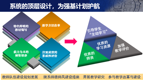 复旦大学基础医学院具有一套系统的顶层设计方案,包括教学方法改革、特色鲜明的教材编写、能力为本的师资培养以及注重成效的形成性评价等,让学生能够获得更优质的师资力量和更丰富的学习资源,引导学生主动学习的同时加强教学评价,为强基计划拔尖培养保驾护航。