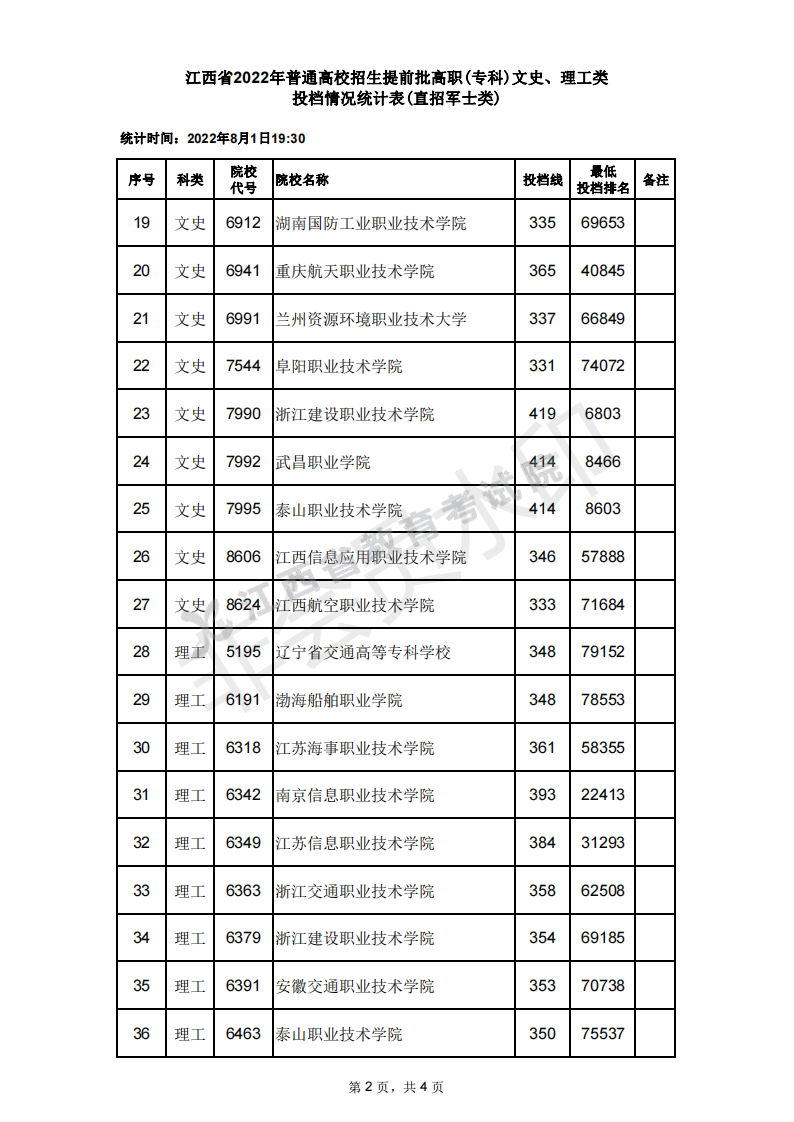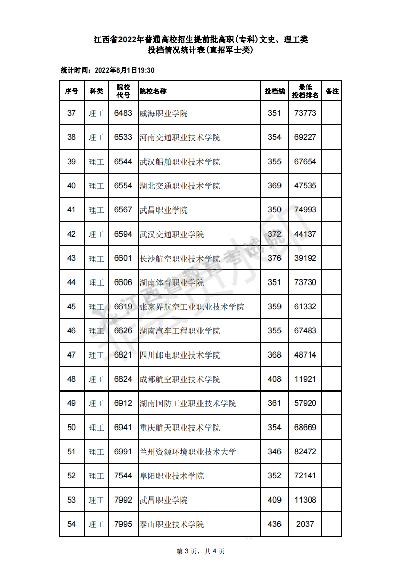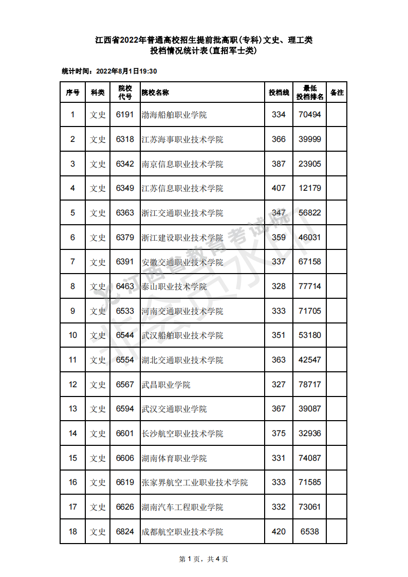 在江西文科中,分数最高的是成都航空职业技术学院420分,所在的位次是6538;分数最低的是武昌职业学院327分,所在的位次是78717