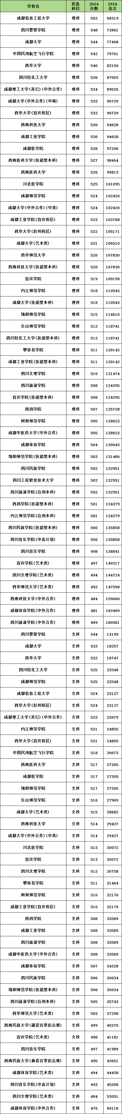 2024年四川省所有公办二本录取分数线一览表如下,数据较多,可滑动查看: