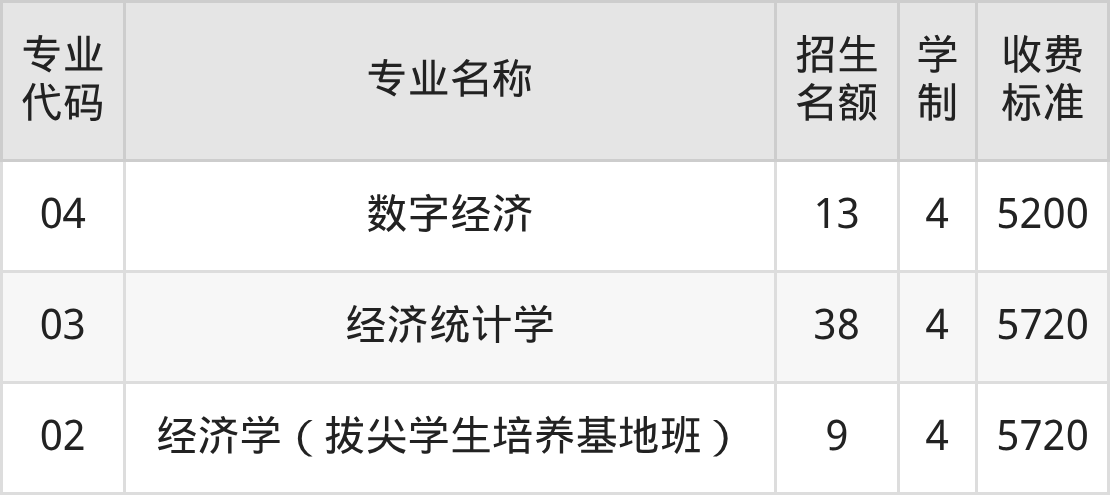 | 01 | 经济学 | 6 | 4 | 5720 |
